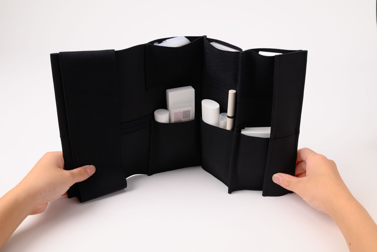 生活に便利なグルっとまとまるメイクスタンドは、あなたのメイクツールをしっかりとまとめて持ち運びができる便利アイテムです。伸縮性に優れた平ゴム素材を使用し、しっかりとした固定感を実現しました。外出先でも手軽に使えるため、旅行やお出かけに大活躍します!環境にも配慮した素材であるため、安心してご使用いただけます。手軽に美しさを持ち運びましょう!